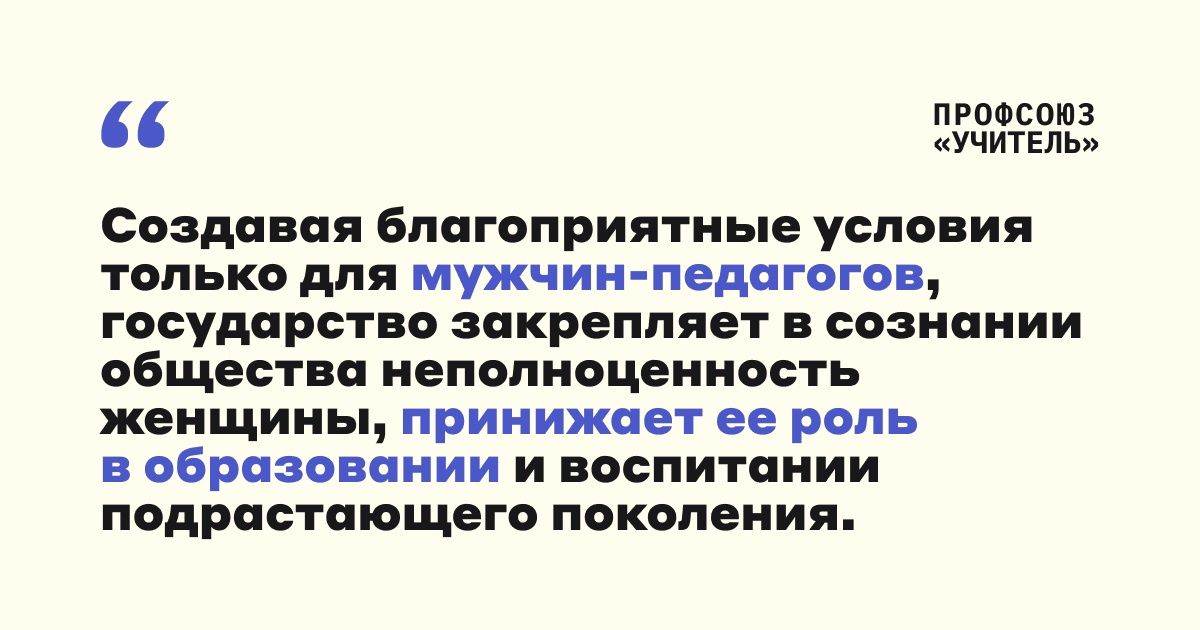 В составе профсоюза «Учитель» есть гендерная комиссия. Она старается отслеживать и фиксировать факты неравенства по половому признаку.