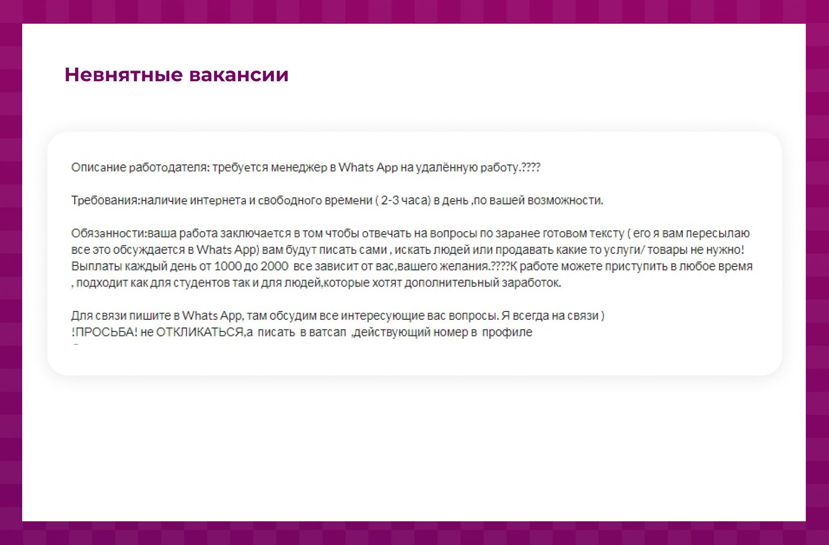 Откликаться на такое не стоит — реальные вакансии и компании, которые могут вас обмануть.
