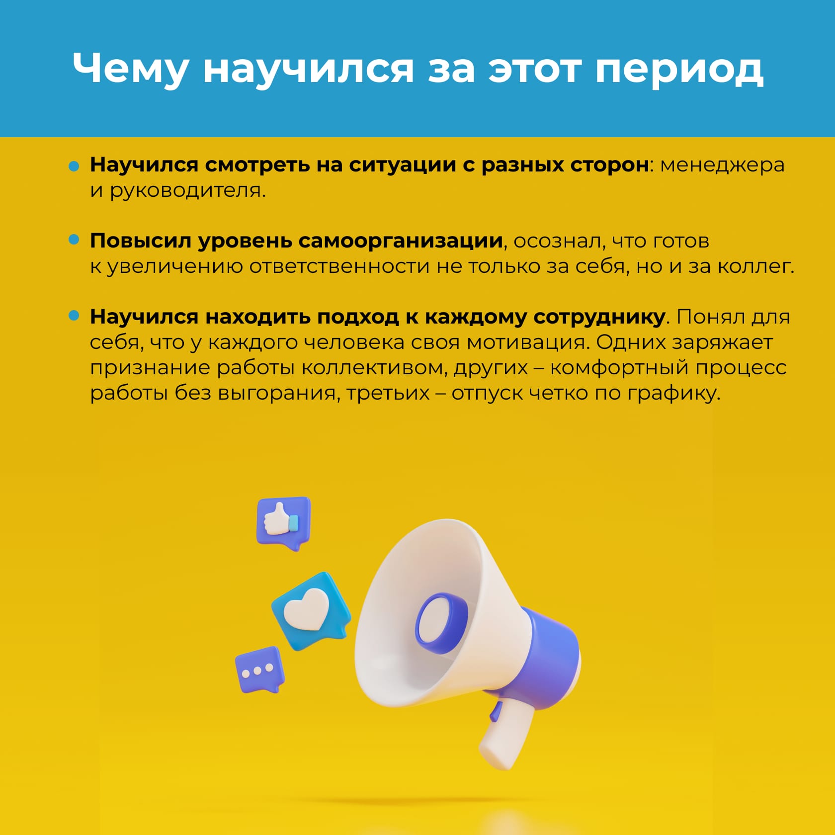- системно посмотрите на свой опыт — выделите главное, вспомните лучшее