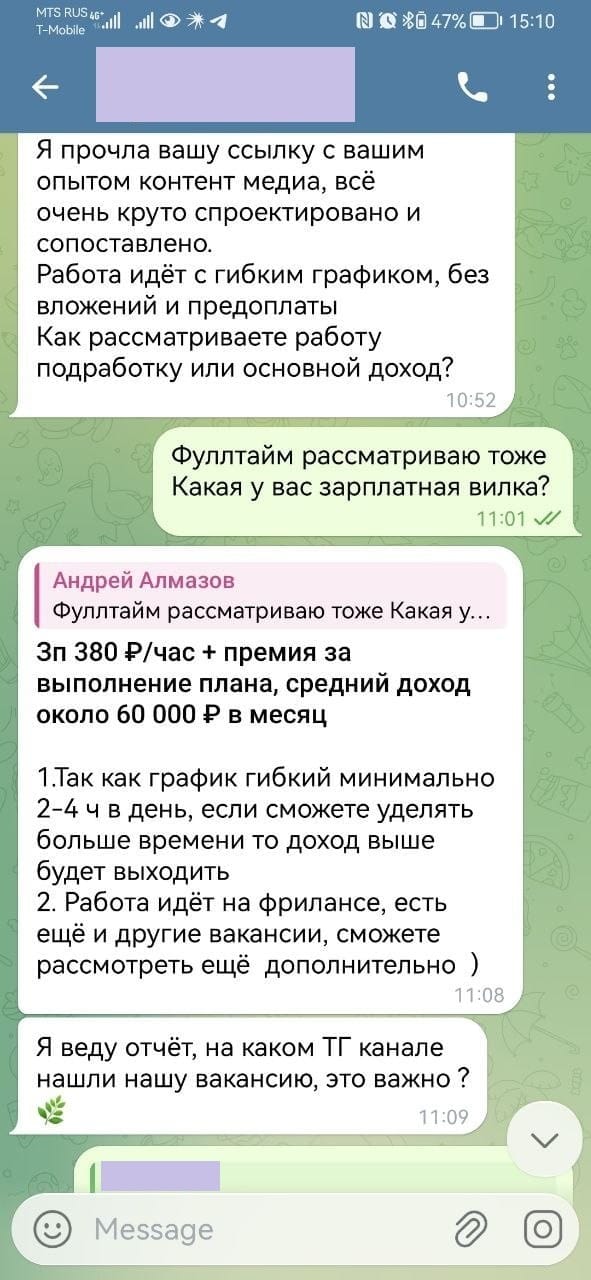 Но со временем мошеннические схемы устаревают. Истории обманутых людей и специальные чаты соискателей делают свое дело — люди становятся осторожнее и более критично изучают рынок. Администраторы каналов с вакансиями тоже стараются усилить модерацию и не пропускают откровенный «скам» (обманные схемы через интернет).