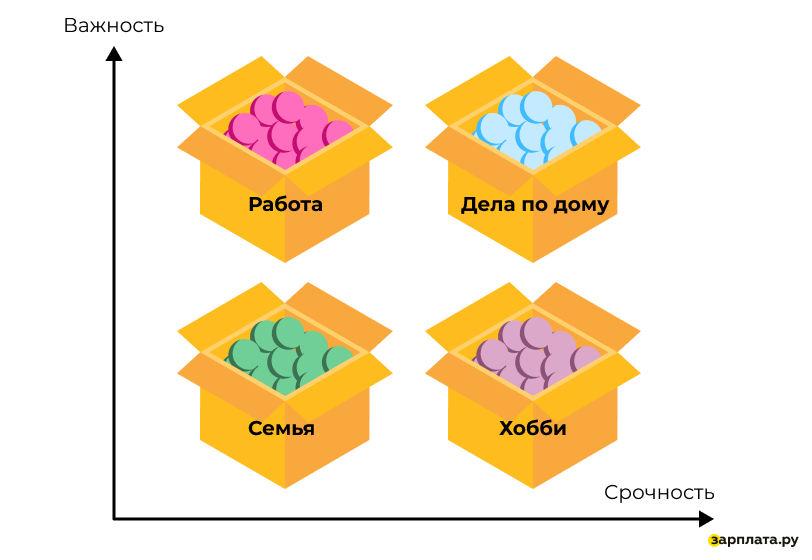 Структуры помогают не только в работе, но и в жизни в целом. Например, хотите внедрить тайм-менеджмент — начать планировать рабочие задачи и личные дела. А еще, возможно, учитесь, у вас есть хобби. Здесь тоже помогают структуры, например, тайм-блокинг и матрица Эйзенхауэра. Первая поможет разделить задачи по «коробочкам», то есть сферам жизни, а вторая — расставить приоритеты.