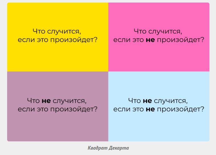 Например, когда вам нужно принять трудное решение, хорошо помогает квадрат Декарта.