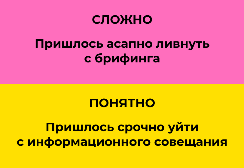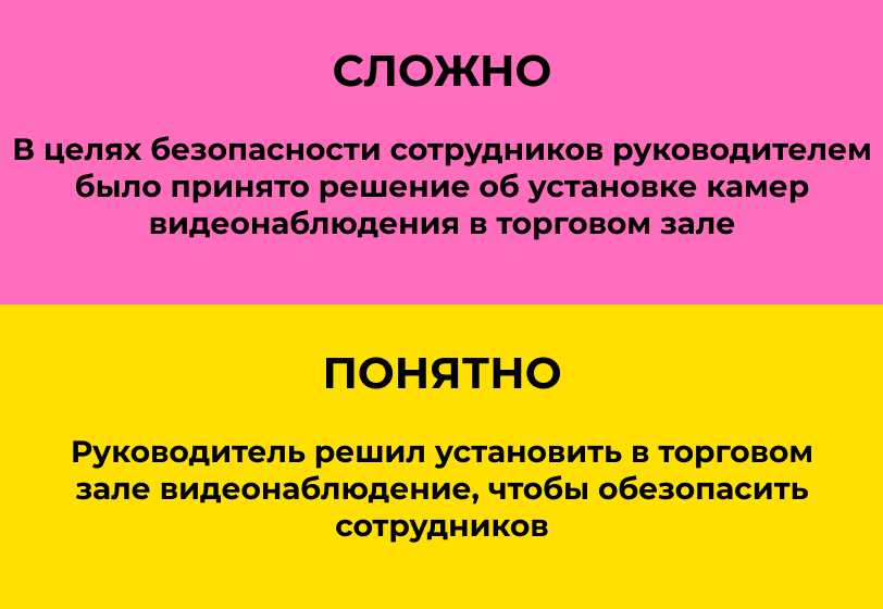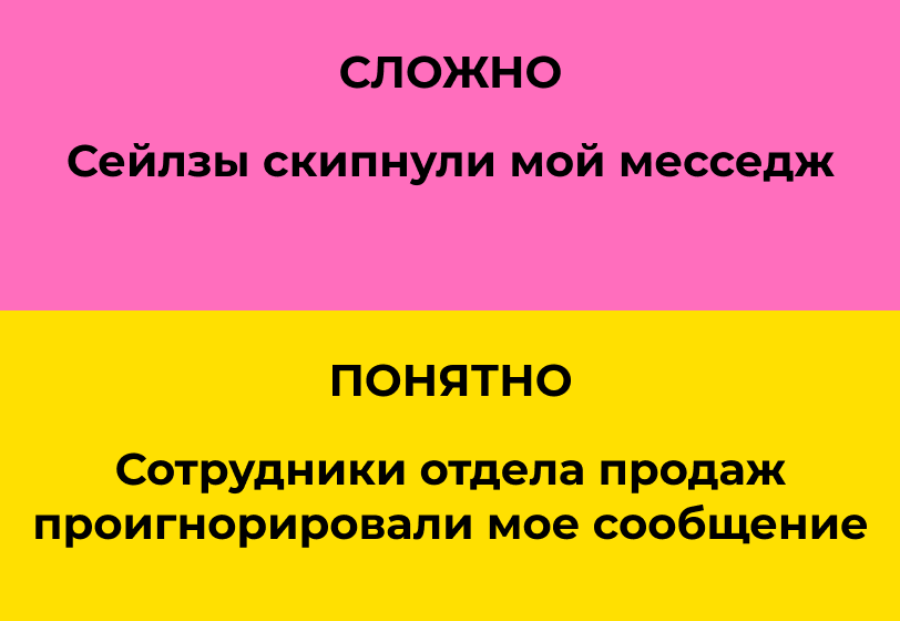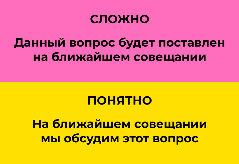Бюрократические казенные обороты уродуют язык, а слова-канцеляриты напрягают всех — от коллег и клиентов до подписчиков в соцсетях. Во-первых, от такой манеры речи веет судебными протоколами и пафосными отчетами чиновников. Во-вторых, затуманивается смысл фразы, даже самой обычной. Канцелярит воздвигает каменные лабиринты там, где можно обойтись простыми словами. Пример из реального текста, который присылали нам в редакцию: